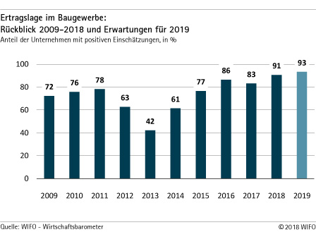 Heuer hat sich das Geschäftsklima im Baugewerbe deutlich verbessert. 91 Prozent der Unternehmer und Unternehmerinnen bewerteten die Ertragslage im Jahr 2018 als positiv und 93 Prozent sind optimistisch im Hinblick auf 2019. Diese Prozentsätze sind die höchsten des letzten Jahrzehnts und bestätigen den positiven Trend der Branche.